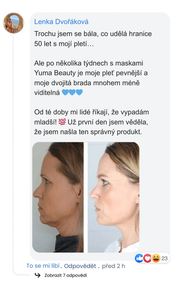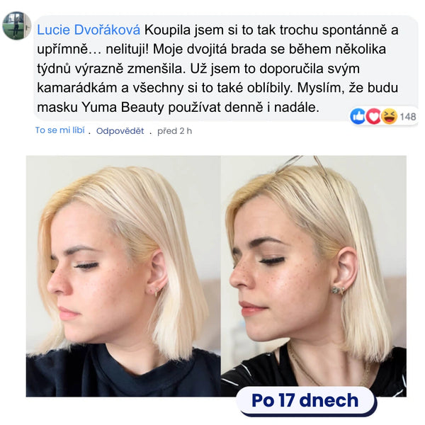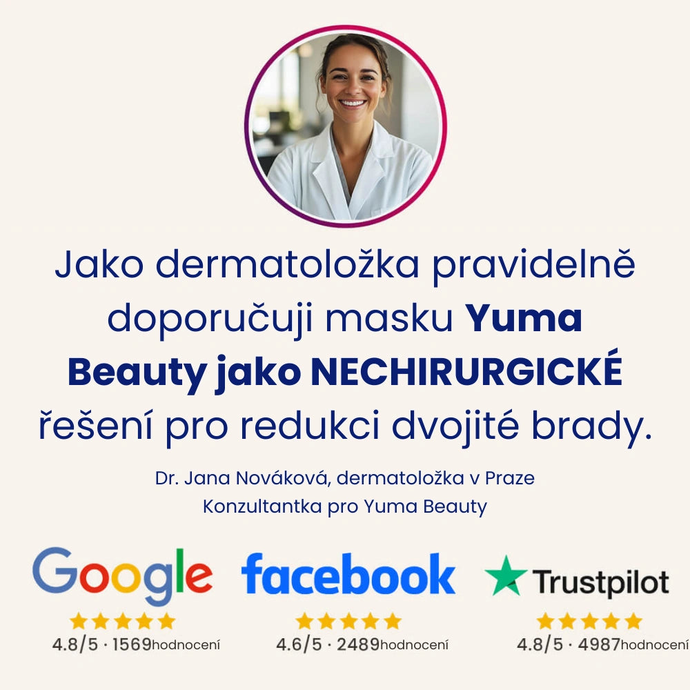Jako dermatoložka pravidelně doporučuji masku Yuma Beauty jako NECHIRURGICKÉ řešení pro redukci dvojité brady.