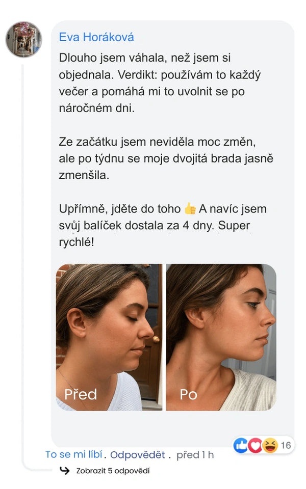 Výsledky jsou viditelné už po prvním použití – hladší pleť a postupné odstranění dvojité brady snadno a rychle!