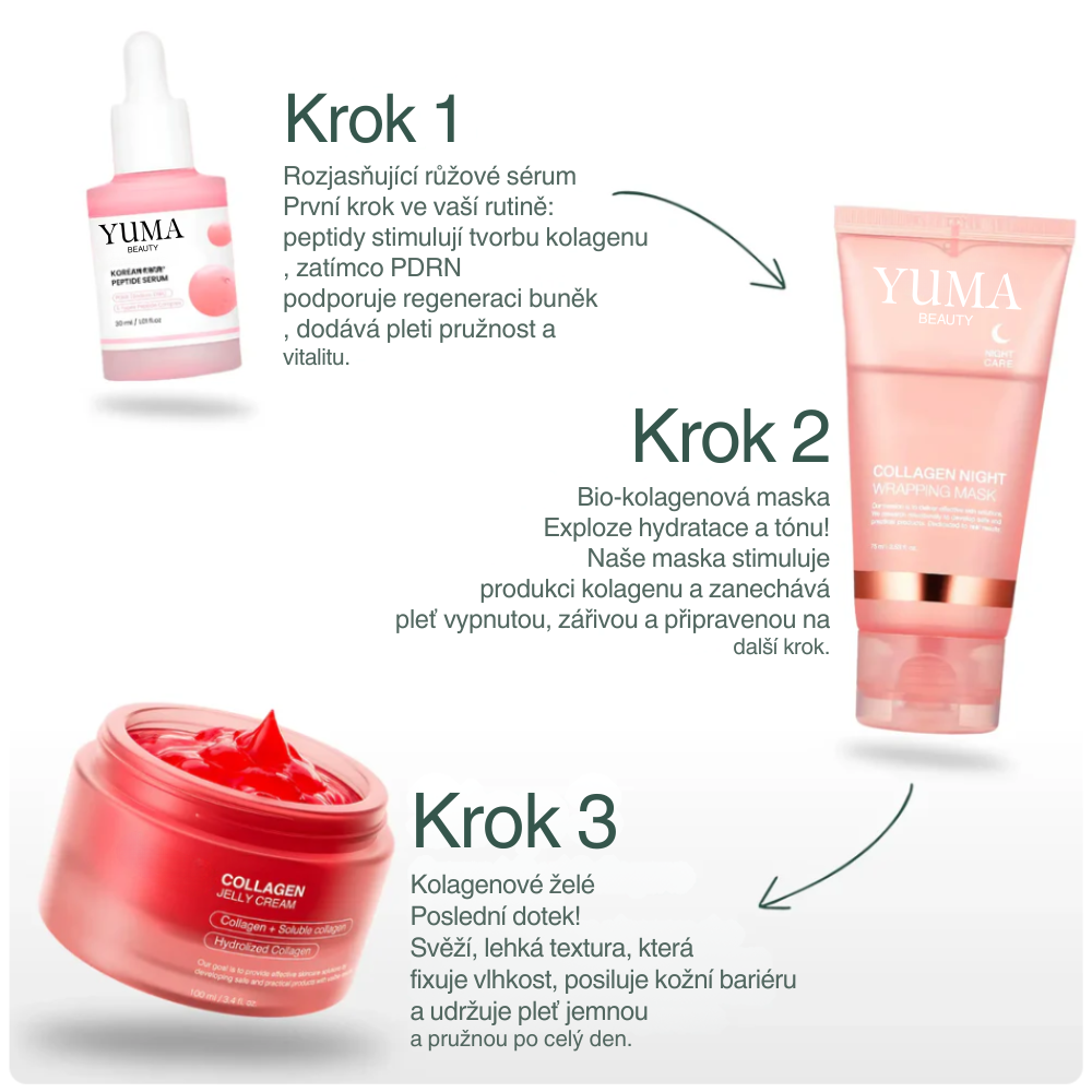 Zažijte noční proměnu s kolagenovou noční zábalovou maskou Yuma Beauty, která je pečlivě vytvořena tak, aby pečovala o pružnost vaší pleti a chránila ji během spánku. Tato inovativní slupovací pleťová maska je navržena tak, aby působila přes noc a poskytovala intenzivní péči o elasticitu i hydrataci.