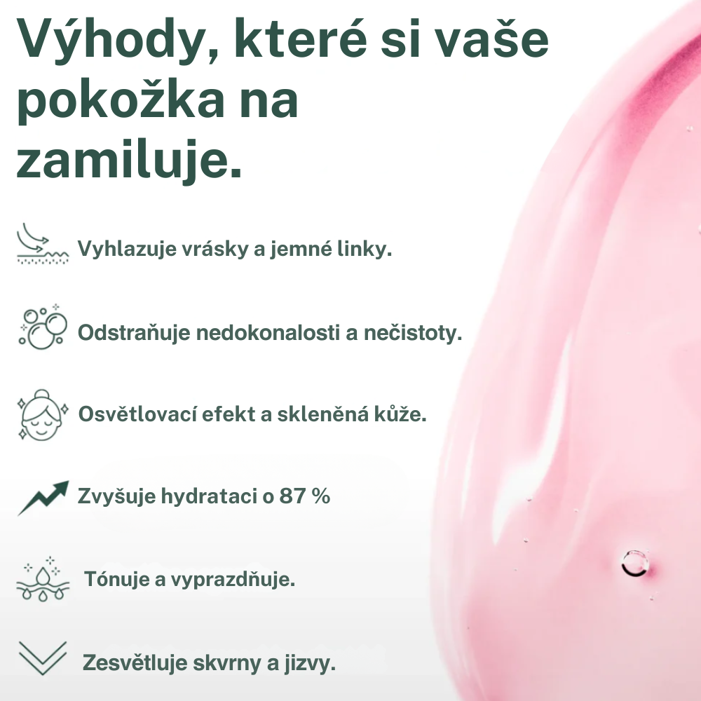 Zlepšuje pružnost a hydrataci, poskytuje péči o linie a pomáhá podporovat mladistvý vzhled pleti.