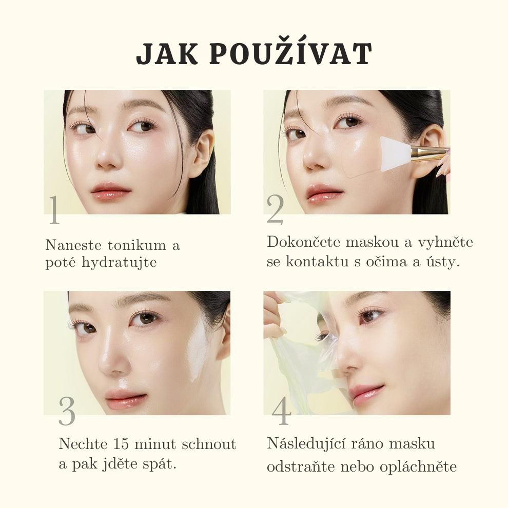 KROK 4: Ráno opláchněte a jemně odstraňte masku vlažnou vodou. Vaše pleť je okamžitě jemnější.