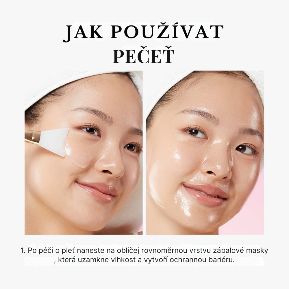 4. Druhý den ráno zábalovou masku jemně odstraňte odloupnutím od okrajů nebo ji důkladně opláchněte vlažnou vodou, abyste odhalili osvěženou pleť.